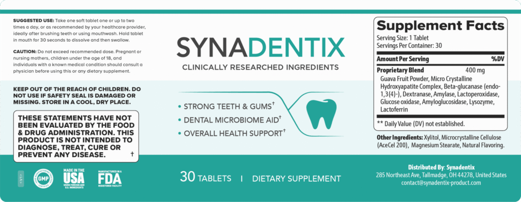 During our research, we discovered that Synadentix is manufactured by a company that claims to have developed a unique formula designed to support the natural balance of the oral microbiome, strengthen enamel, and promote healthier gums, helping address common dental concerns caused by poor oral bacteria, aging, or dietary habits.